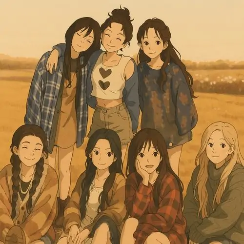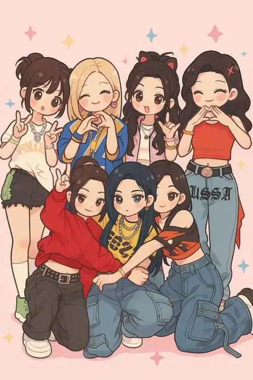 Điểm nổi bật của avt đẹp nằm ở biểu cảm phong phú, đường nét mềm mại, màu sắc sáng và bố cục cân đối để cả bảy người đều hiện rõ. Loại ảnh này rất hợp với hội bạn thân, nhóm lớp, câu lạc bộ nhỏ hoặc team chơi chung muốn có một hình ảnh chung thật xinh và dễ nhớ.