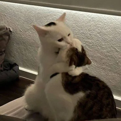 Hình chế mèo ôm cắn nhau tình cảm dịu dàng